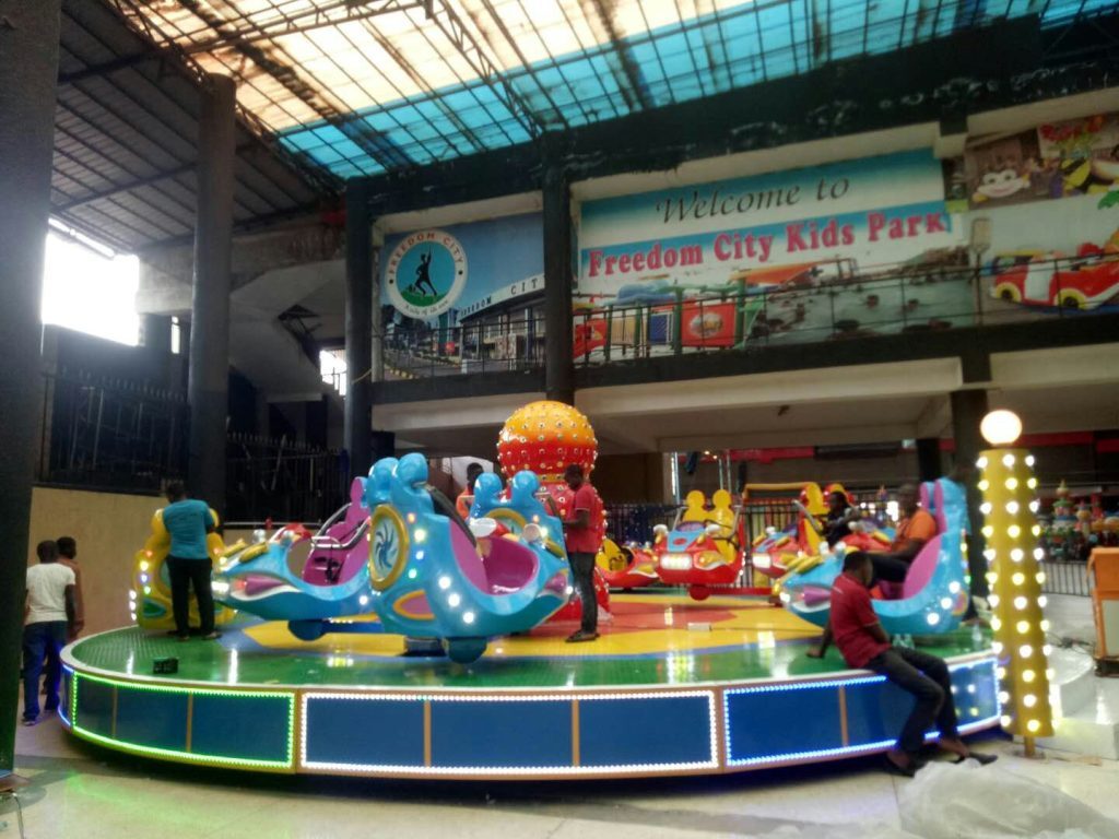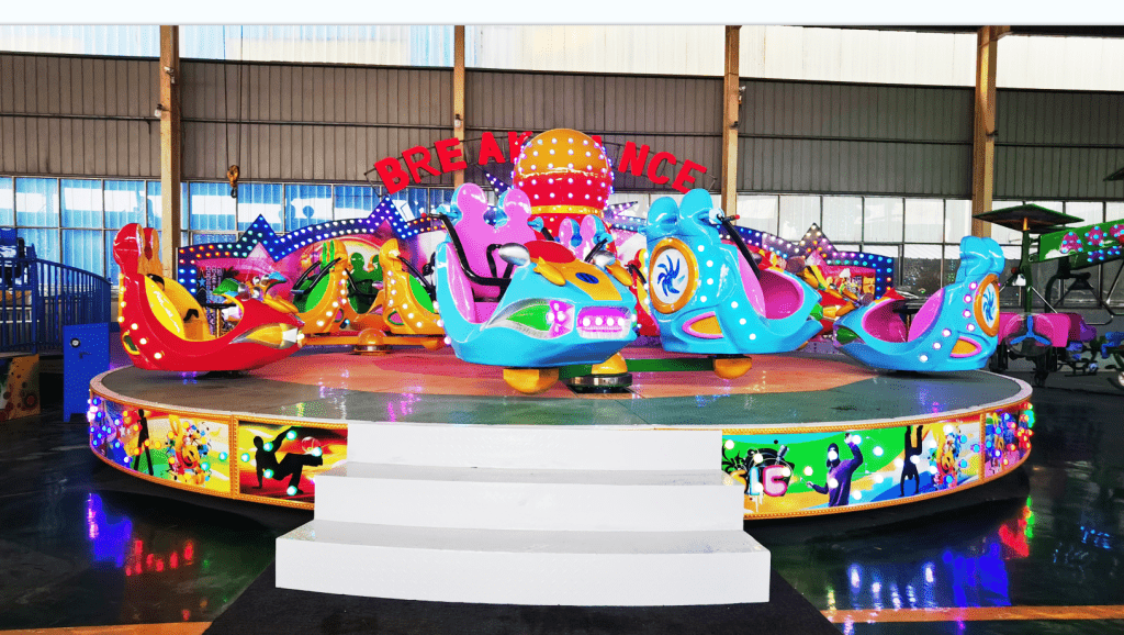 There are also names such as Dazzle Ride, Star Adventure, Spin block, Mini Ride, etc. It is a kind of horse-riding amusement equipment. The cockpit is distributed around the central core pillar. When tourists take the ride, the cockpit rotates 360 degrees and rotates around the central core pillar with beautiful music and flashing lights, allowing tourists to experience infinite joy in the sense of centrifugal force and weightlessness.