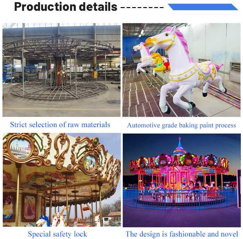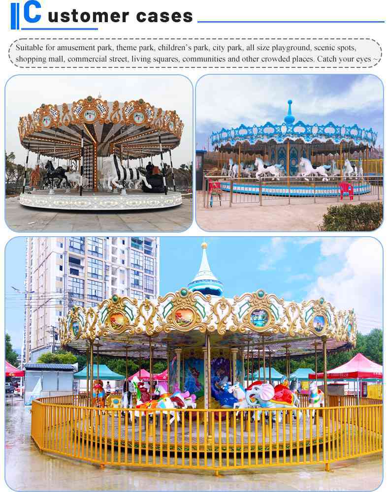 Carousel is a classic amusement equipment. You can find it in any amusement park, plaza, playground etc, with its slow rotation speed and soft jump range, in dynamic wonderful music, passengers can enjoy the scenery and relax at the same time