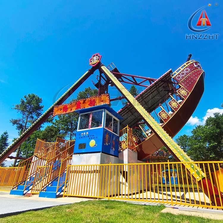 Pirate ship, just like the ancient pirate ship, is a horizontal axis swing repeatedly classic amusement equipment, it starts from slow swinging then slowly swing sharply, sit in the pirate ship, with slow to quick swing repeatedly, like on the waves of the sea, and sometimes on the crest, and sometimes fall off a cliff, adventure and thrilling. Pushing the limits that people can bear.