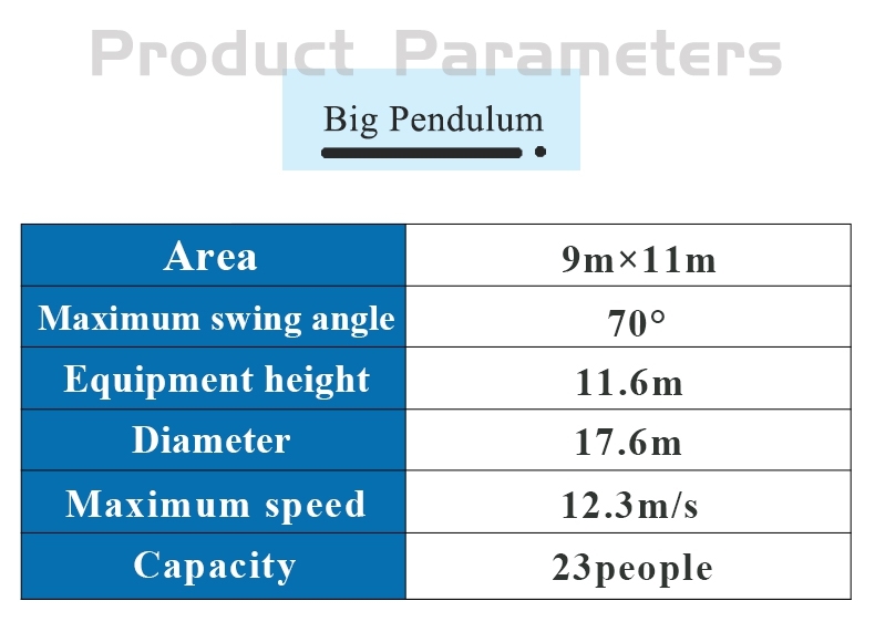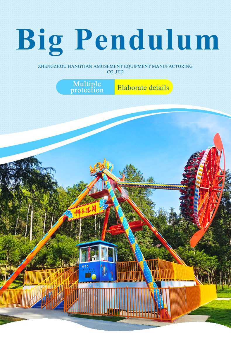 The big pendulum belongs to a crazy and exciting large-scale amusement equipment. It has a novel shape, an atmospheric appearance, exciting and interesting, and the thrill is suitable. It makes the amusement thrilling and laughter together, so it is favored and loved by passengers.