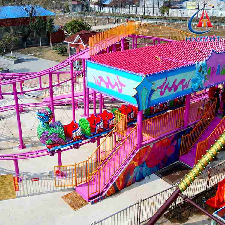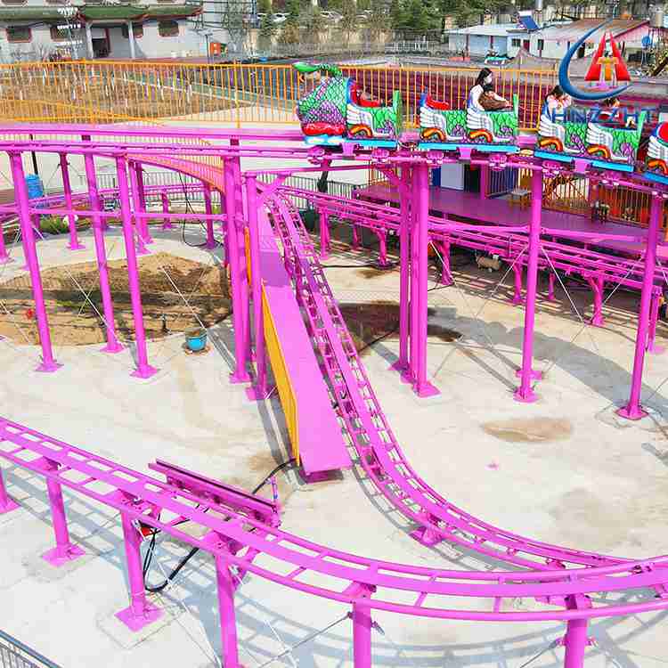 Roller coaster is an iconic amusement equipment in park. Its fast speed, thrilling without risk attracts many people to try. The bright-colored track design is more eye-catching against the background of the blue sky. After it start, it is like a train going into the sky. The huge sense of weightlessness makes passenger scream loudly, challenging people's psychological limit.